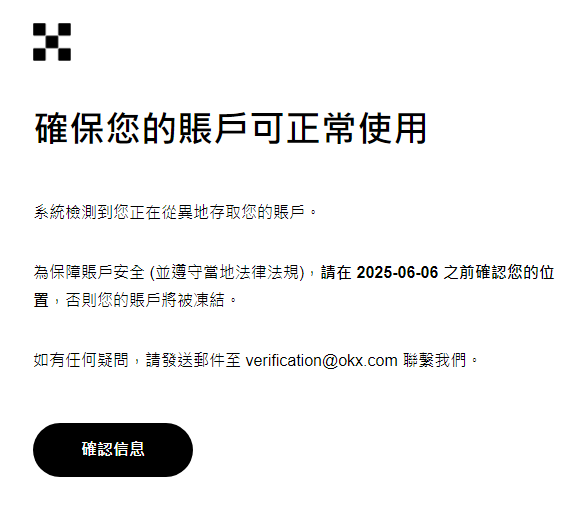 [其它] okx发邮件来确认地址,不知道是不是ip被查了 |